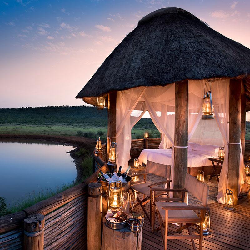 Le vin blanc est frais et sec, arômes de citron vert et de pomme. C’est un Kleine Zalze 2013, élu meilleur vin blanc au monde en 2015. Les amoureux, perchés au cœur de la jungle, à 7 mètres d’altitude, sur une plateforme de sylve équipée d’un lit à baldaquin, d’une table joliment dressée, contemplent le coucher de soleil sur la « Sabie River » qui court d’Afrique du Sud au Mozambique. Éléphants, lions et antilopes viennent s’y désaltérer à cette heure de la journée. Le spectacle est époustouflant ! Seuls quatre lodges ont accès à ses berges. L’Ivory Lodge, luxueux, propose 8 suites équipées de piscines privées, deux villas, et accueille de très chanceux visiteurs toute l’année.