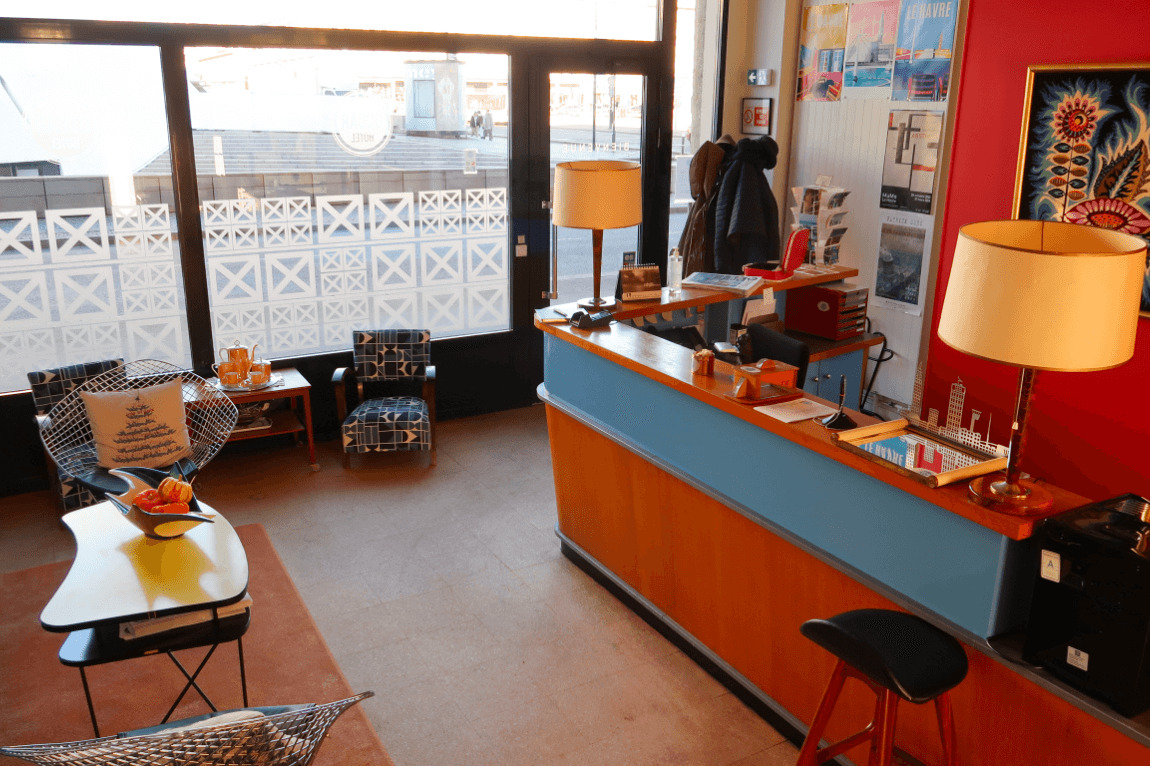 Plusieurs d’entre elles bénéficient d’un lit queen-size et d’une vue privilégiée sur le Volcan, le célèbre édifice havrais en béton blanc conçu par l’architecte brésilien Oscar Niemeyer dans les années 1980 et qui accueille aujourd’hui la Scène Nationale du Havre. Clin d’œil à Niemeyer, le nom de cet hôtel havrais fait aussi référence à Oscar, la marque française de mobilier modulable éditée dans les années 1950.