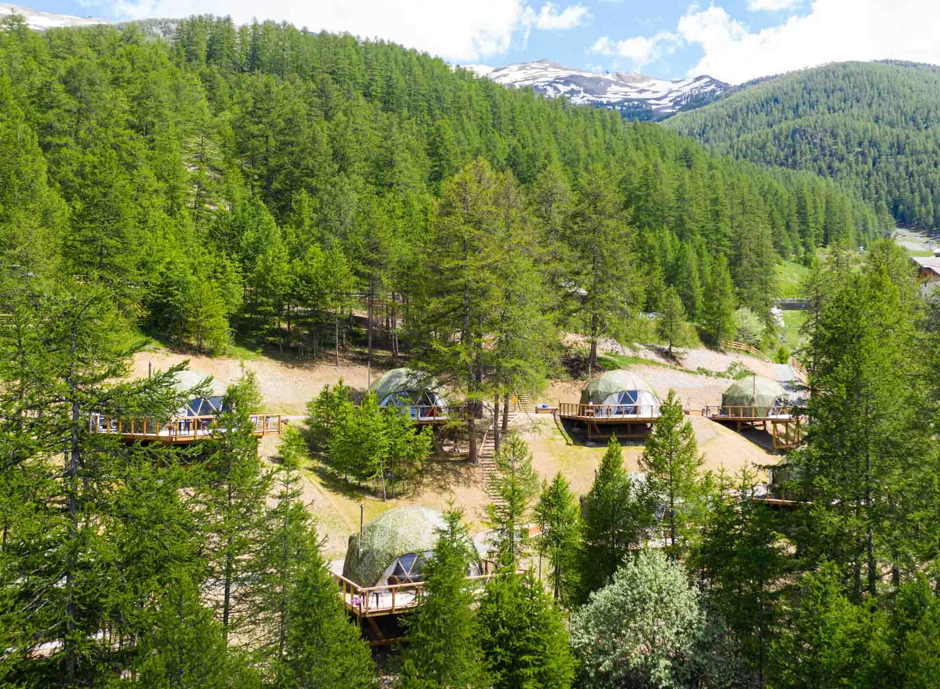 Direction les Hautes-Alpes pour un week-end insolite en France. Perchés à 1800 mètres d’altitude, on trouve trois kotas, à savoir des cabanes finlandaises, et 11 d’hômes dans les arbres qui se déclinent en quatre catégories : le Prestige pour deux, le Luxe idéal pour un couple avec un enfant, le Cosy qui peut recevoir jusqu’à 4 personnes et le Family pour une échappée avec toute sa tribu. Toutes bénéficient d’une vue sur la forêt et d’une terrasse. Certaines ont même une baignoire. Ultra romantique ! Une courte carte de plats et un spa suspendu sont aussi disponibles.
