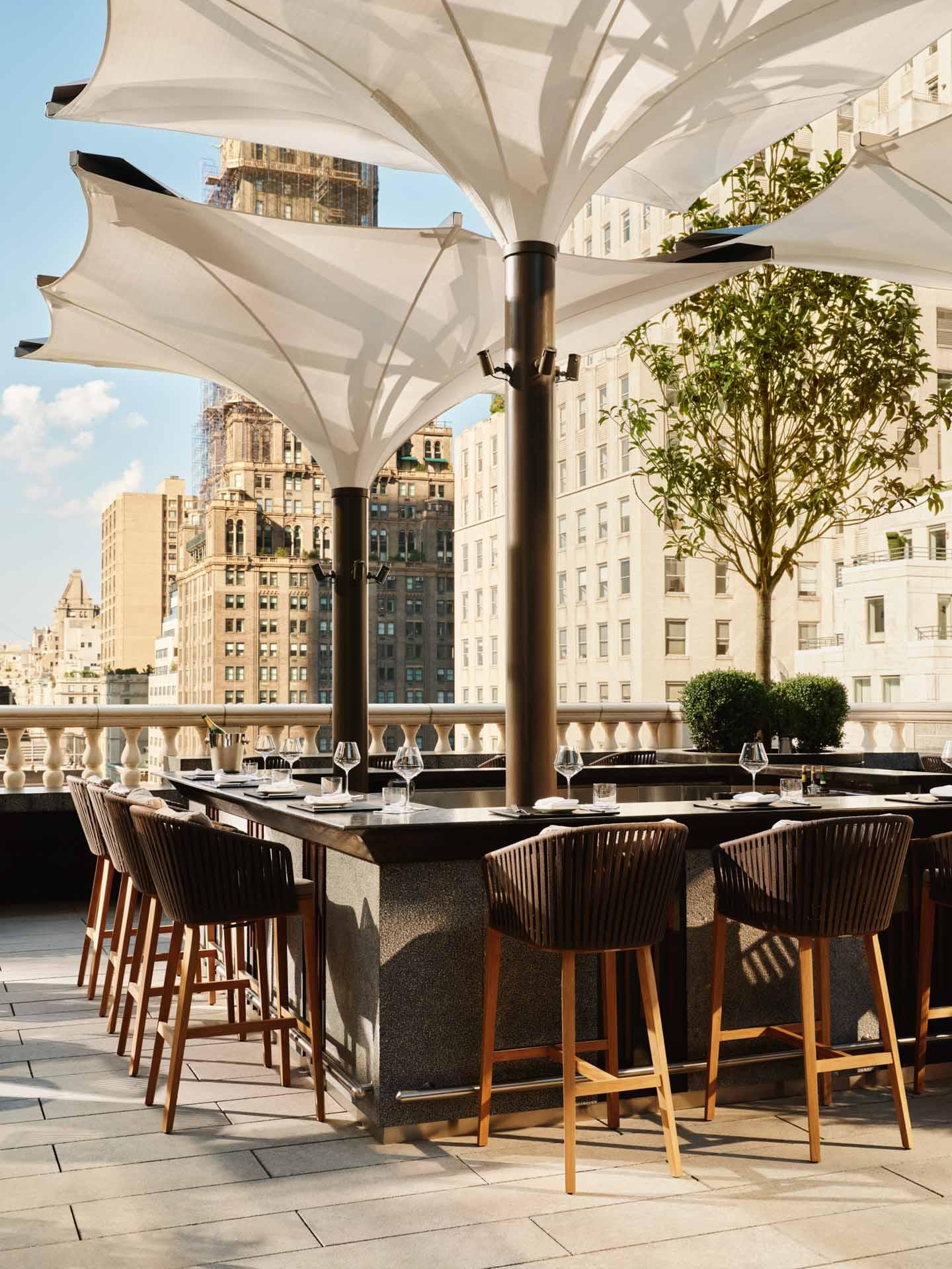 Au coin de la 5e Avenue et de la 57e rue, l’Aman New York est l'une des adresses les plus luxueuses de la ville. Avec 83 clés (check-in en chambre, minimum 70 m2) au minimalisme asiatique, signature d’Aman, toutes dotées de cheminées fonctionnelles, l'hôtel offre un niveau de confort inégalé. Conçue par l'architecte Jean-Michel Gathy, l’adresse occupe l'ensemble du Crown Building, un monument historique surplombant Central Park. La grande salle cathédrale derrière le lobby, avec ses cheminées, ainsi que la terrasse avec bar et vue sur les gratte-ciel, complètent parfaitement l'ambiance et créent une atmosphère de vie new-yorkaise par excellence. Chaque semaine, des expériences exclusives sont organisées pour les guests comme la visite d’ateliers d’artistes à Brooklyn ou la dégustation de vin de la Napa Valley avec un vigneron.