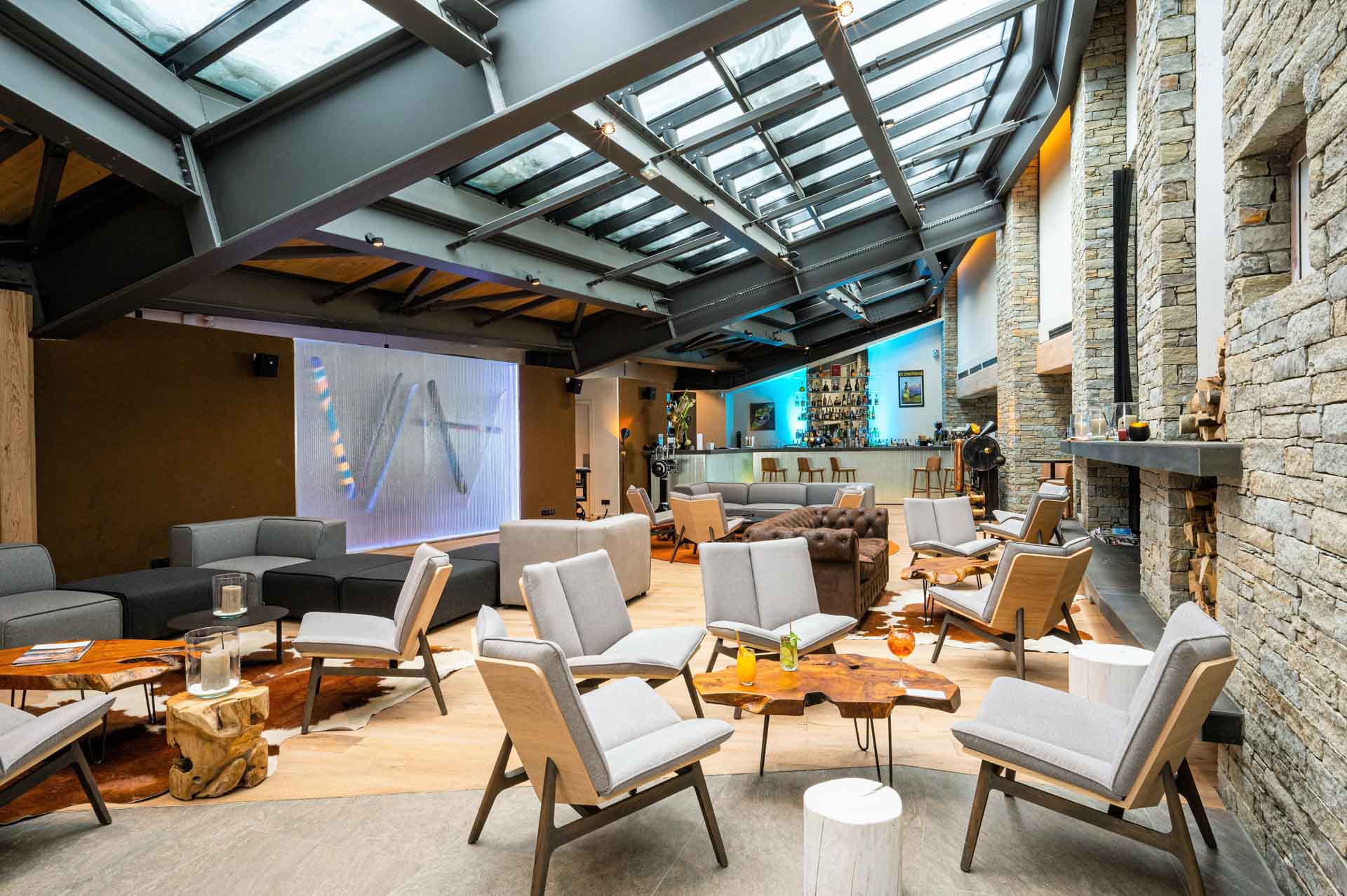 Le pitch ? A 2 100 m d'altitude face au glacier de la Grande Motte, ce 5 étoiles à Tignes du groupe Les Étincelles a pris la place de l’ancien cinéma. Ce gigantesque cube blanc est aménagé comme une sorte de loft aux airs de grand nord canadien : bois et pierre aux murs, spectaculaire cheminée centrale, canapés et fauteuils en feutre, rondins de bois en guise de tables d'appoint. Les 69 chambres, sobres mais fonctionnelles, combinent penderies en alu, plaid en chevron et artistiques têtes de lit qui font penser à la trace d’un slalomeur. Il règne une ambiance décontractée et festive au restaurant Il Savoia, concept italo-savoyard, comme à l’Icebraker bar, où l’on sirote un cocktail signature aux herbes de montagne. Soirées animées et karaoké apportent un esprit récréatif, après un moment apaisant entre la piscine et le spa.