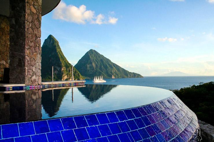 L'hôtel de Sainte Lucie Jade Mountain situé les hauteurs de l'Anse Chastanet, au sud-ouest de Sainte-Lucie, est des lieux les plus esthétiques de l'île. Face à la montagne et en pleine mer, vous aurez la possibilité de vous détendre au coeur d'un Spa aux allures d'un jardin secret caribéen. Le spot idéal pour visiter Sainte-Lucie.