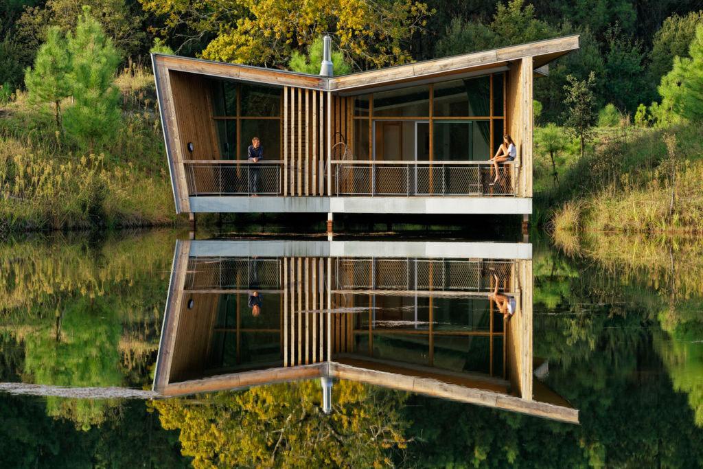 Au sud de la forêt landaise, à 15 minutes de la plage d’Hossegor, 7 « modges » et 1 lodge familial cernent le bleu silencieux d’un étang. Les cabanes d’architecte, montées sur pilotis et éco-responsables, ont été aménagées dans un style japonais et minimaliste. Le domaine, labellisé Relais du Silence, est un havre de tranquillité qui fait l’éloge de la lenteur : coassement des grenouilles, lecture dans un hamac, piscine, bain norvégien extérieur chauffé au bois, sauna et salle de massage. Toutes les activités ont été pensées en symbiose avec l’environnement endémique. Le domaine abrite également un potager en permaculture et un verger.