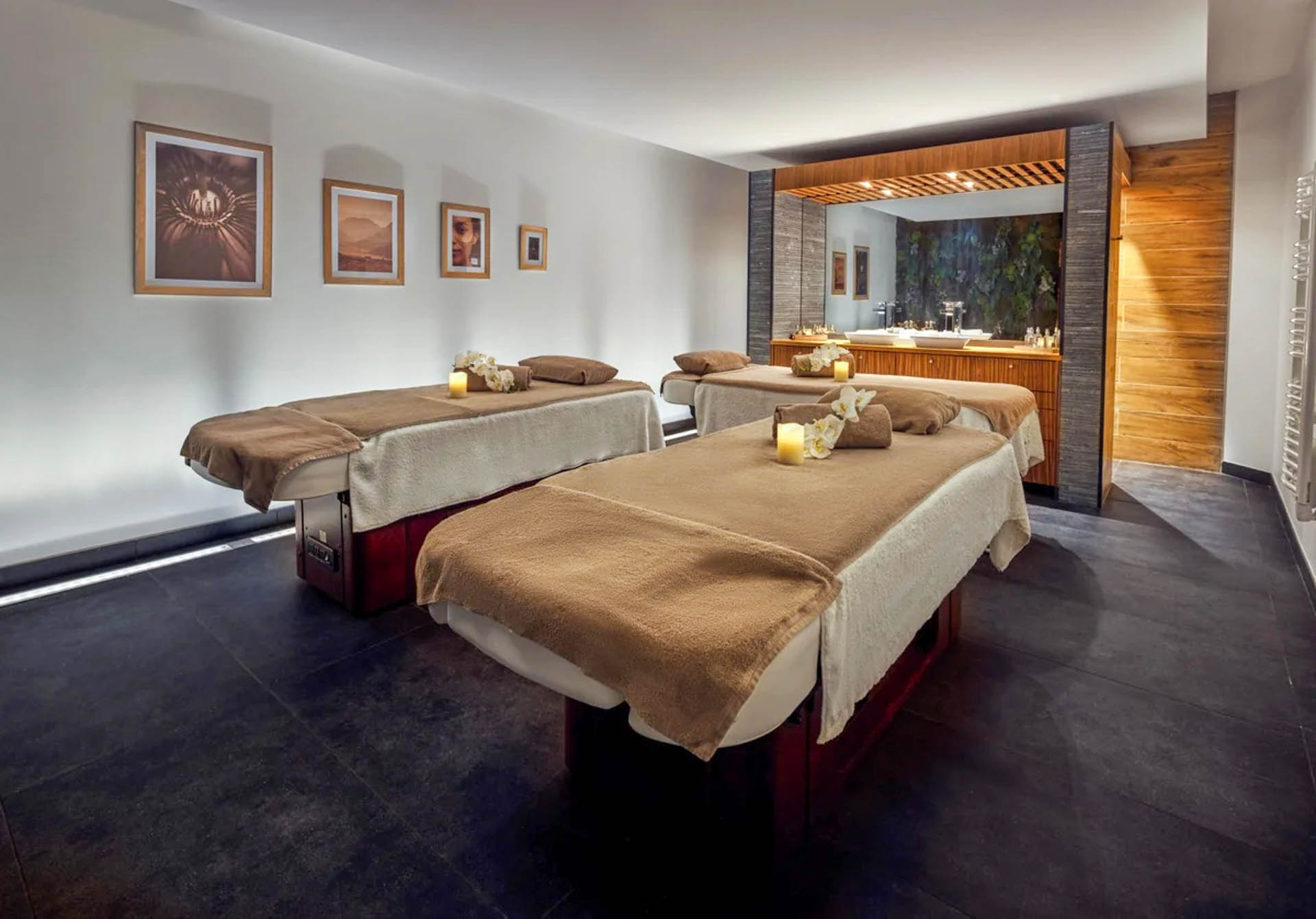 Plusieurs types de chambres sont disponibles dans l'hôtel 5 étoiles qui compte 78 clés. D’un côté, des hébergements modernes aux teintes neutres. De l’autre, une décoration traditionnelle faite de pierre, de bois et de moquette rouge. Les chambres Privilège et Prestige s’étendent quant à elles sur respectivement 30 et 40 m².