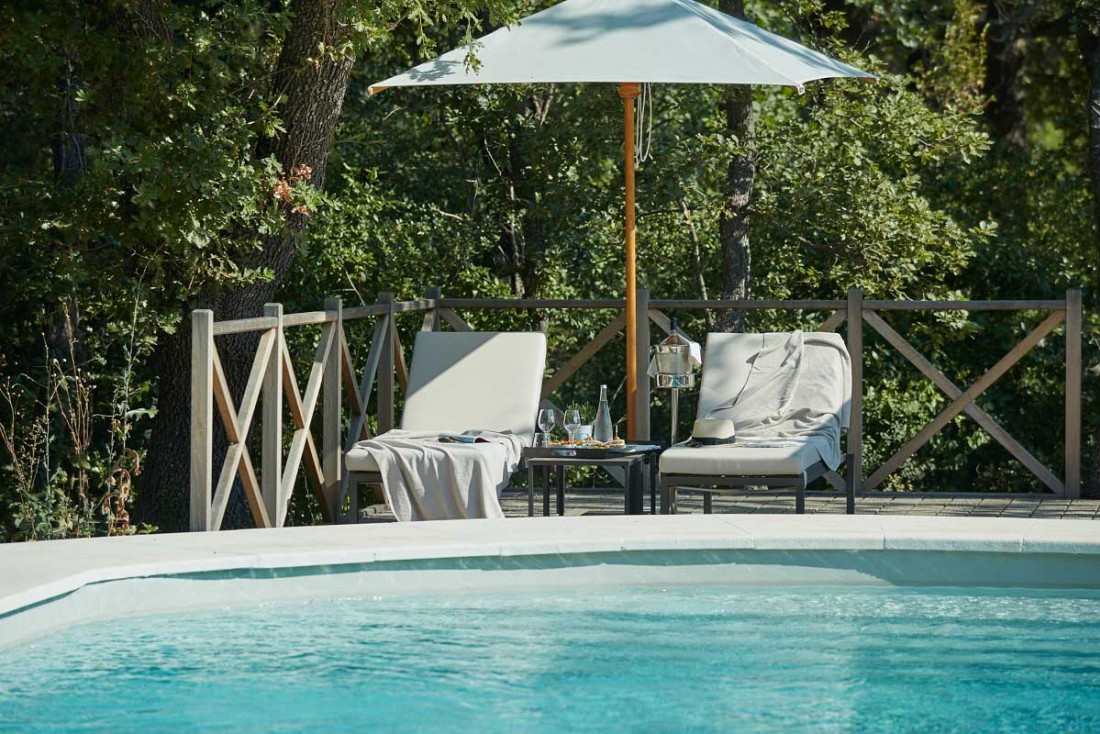 La superbe piscine naturelle, une des plus belles de France, le jacuzzi extérieur et l’espace spa (hammam, salles de massages…).