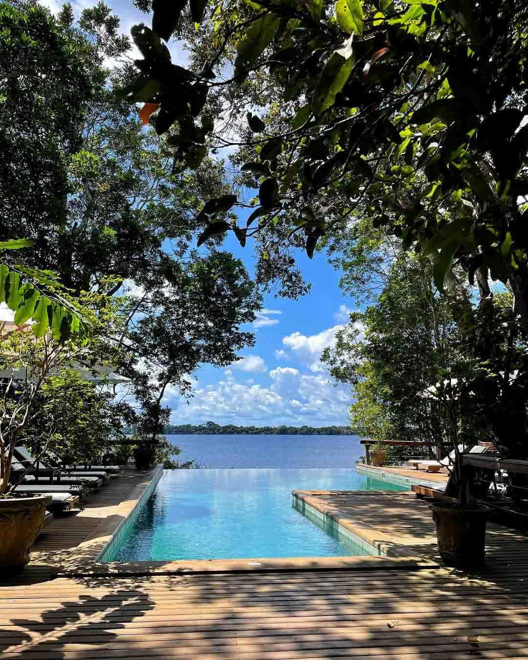 Le pitch : à environ 3 heures de route de Manaus, la capitale du Rio Negro, cet hôtel au Brésil est l’un des plus réputés pour explorer l’Amazonie. Il se trouve juste en face du parc national d’Anavilhanas et ses 400 îles, auquel on accède en minibus ou en hydravion. Le lodge se compose de 22 cottages dont certains avec piscine, confortablement aménagés et disposant de patios agrémentés de hamacs. Dans un cadre serein avec vue sur le fleuve, on sirote au bar des jus préparés avec des fruits frais de la jungle : cupuaçu, bacaba et açaï.