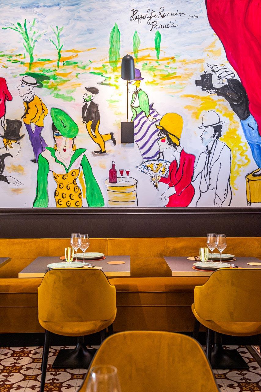 Si, en salle, les vieilles pierres ont été remplacées par une fresque de 13 mètres de long signée Hyppolyte Romain, en cuisine c’est le chef étoilé dans sa Meynardie du Périgord, Adrien Soro, qui propose une approche actuelle et délicate de la cuisine Provençale. Sous une terrasse ombragée avec vue sur la Vallée du Rhône, on goûte le pigeon de la Drôme cuit rosé en croûte d'herbes fraîches, ou encore le turbot cuit au beurre mousseux de garrigue accompagné d'aubergine rafraîchie à la mélisse du jardin. Coté vins, on pioche dans les différentes caves des propriétaires du domaine (Prieuré des Papes, Coyeux, Pousterle ou le Moulin Blanc). Là encore, un restaurant tout proche du Luberon.