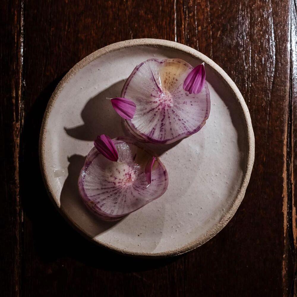 À l’entrée du Luberon au bord de l’ancienne route Nationale 7, le chef, et propriétaire, Nicolas Bottero a choisi de se détacher des codes de la Provence pour la déco de son restaurant. Mais les tables noires et le comptoir moderne ne font pas oublier les assiettes aux accents du Sud qui rendent hommage au savoir-faire des producteurs locaux en respectant les saisonnalités. Les inspecteurs du guide centenaire y ont d’ailleurs été sensibles en accordant à Nicolas Bottero une étoile dans l’édition 2025 du Guide Michelin. Sa cuisine célèbre la terre de ses grands-parents, à l’image de cette volaille fermière de Haute Provence ou ce poulpe de Méditerranée qui partage la vedette avec deux autres stars de la région : des aubergines farcies et aïoli tomaté. Au dessert, la nectarine pochée dans un sirop de fleurs des champs joue du coude pour avoir notre préférence.