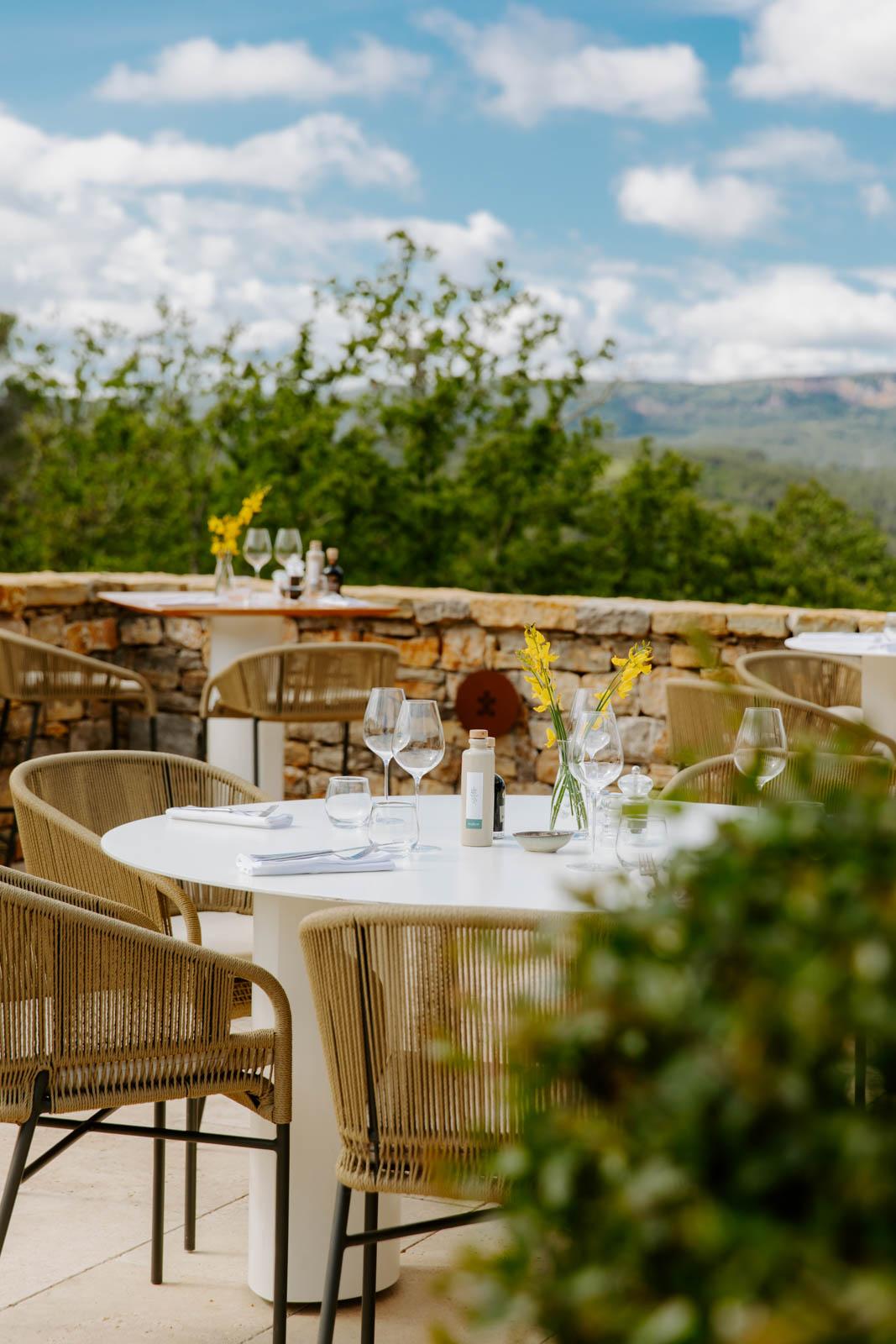 Au domaine, Olivier Scola revendique une cuisine classique et gourmande qui s’appuie sur un réseau de producteurs de la région et sur le grand potager du domaine, où sont cultivés fruits, légumes et herbes aromatiques en agriculture biologique. Le chef enchaîne agneau français et légumes du potager, loup en ceviche ou turbot à la plancha venus de Méditerranée. Une bonne table à la carte en perpétuelle évolution (selon la saisonnalité et les envies) et aux excellents vins bio.