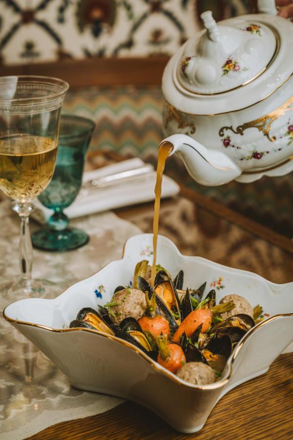 Le cadre ? Le Grand Mazarin, premier hôtel urbain de Maison Pariente (déjà aux commandes de l’hôtel Crillon-le-Brave en Provence ou de Lou Pinet à Saint-Tropez) s’est installé dans le Marais. Son restaurant bar, Boubalé évoque une tendresse yiddish prisée des grands-mères adressée à leur « petite poupée ». Un déjeuner d’hôtel à Paris dont la cuisine porte aux confins de l’Europe de l’Est ou dans les rues pavées de Jérusalem.