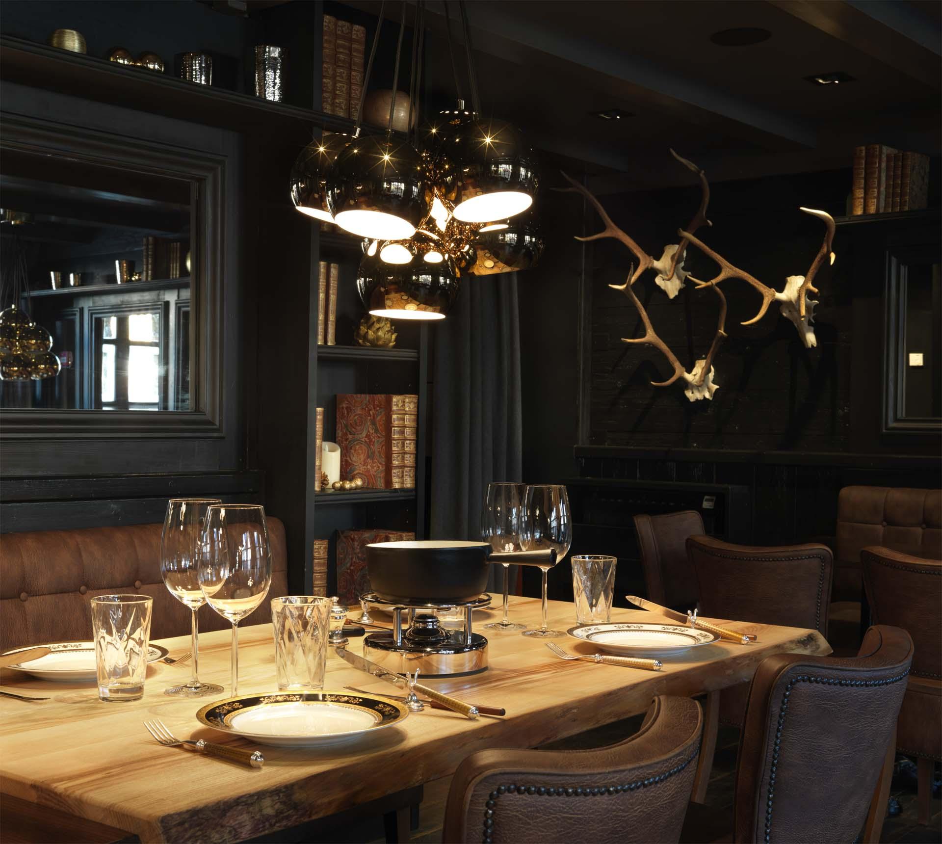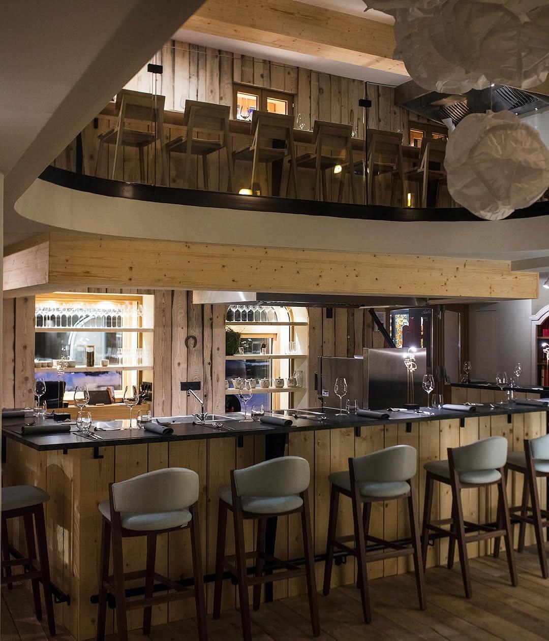 Un décor montagnard et chaleureux pour partager un repas avec son groupe d'amis. Le restaurant de Paris, si festif, a migré jusqu’à Megève avec une table, un bar à cocktails et un piano-bar pour passer un moment convivial après une journée sur les pistes. Côté cuisine, tradition française et simplicité sont ici chez eux : foie gras, poulet rôti, haricots verts et mousse au chocolat pour le dessert !