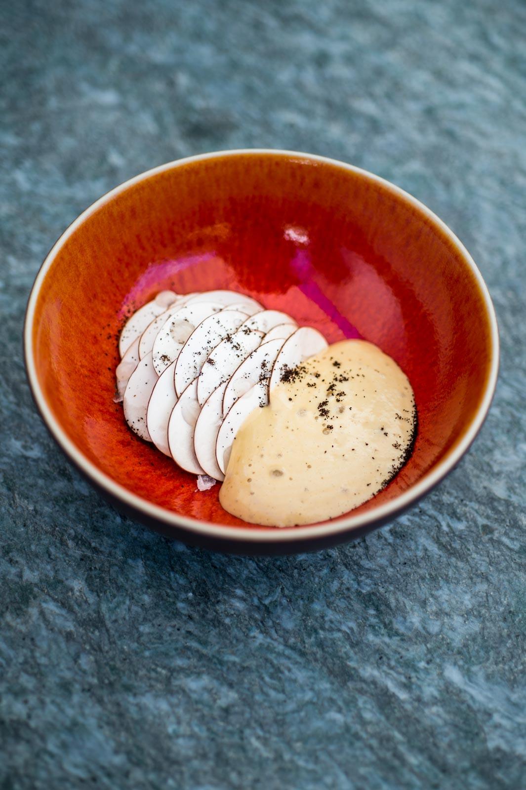 Les trois adresses du chef voient ses créations mises en valeur par une vaisselle sur-mesure créée par Annick Galimond, céramiste installée dans le village espagnol de la Bisbal d’Emporda, spécialisé dans les poteries artisanales.