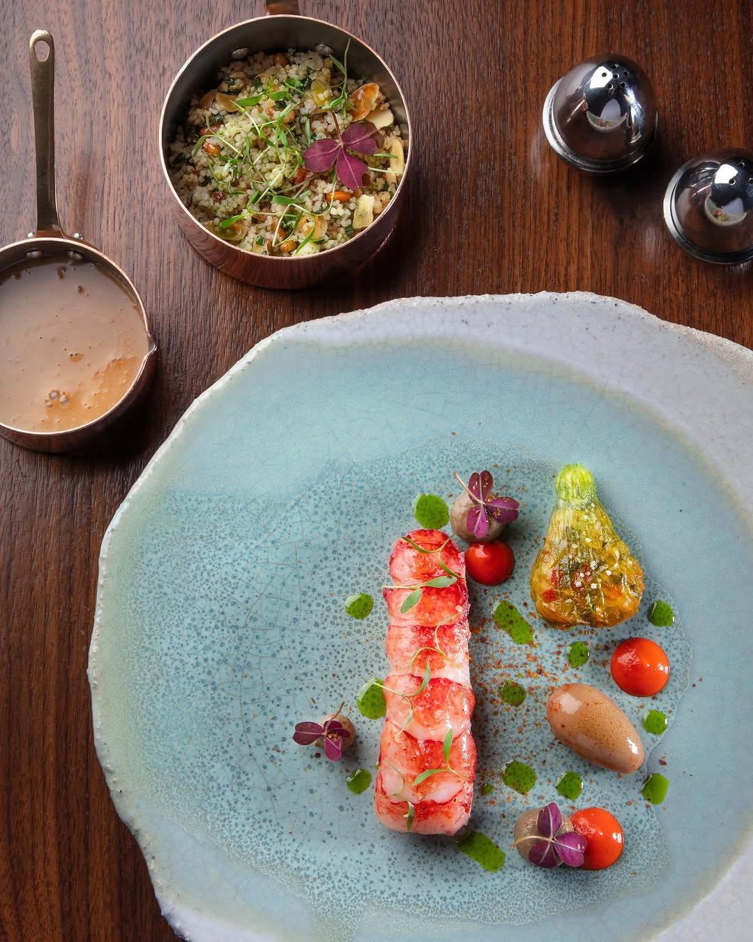 Légumes racines, herbes de montagne, champignons et fleurs comestibles s’imposent comme la trame de ses menus, autour desquels viennent s’articuler poissons du Léman, volailles fermières ou viandes sélectionnées chez des producteurs voisins. À travers ses Balades Gourmandes en 6 ou 8 étapes, le chef esquisse une cartographie alpine : des pentes boisées aux lacs de montagne, chaque assiette raconte une parcelle du territoire. Le menu « Tout Végétal » (150 €) illustre cette démarche avec des compositions d’une grande justesse, où tubercules, racines et plantes sauvages trouvent une place centrale. Les accords mets et vins explorent quant à eux les vignobles de l’arc alpin.