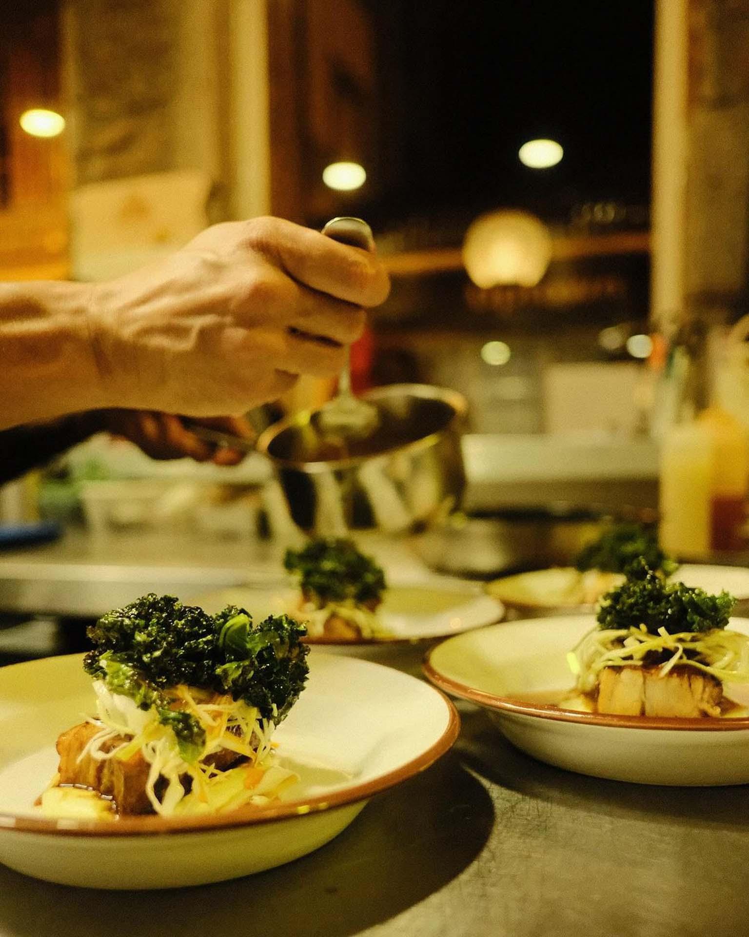 Dans l’assiette : au déjeuner comme au dîner, même combat : une formule unique et mystère, renouvelée tous les jours au fil des arrivages et de l’inspiration. Car dans ce restaurant de Saint-Etienne, tout est fait minute, au feeling mais avec maîtrise, avec un sourcing locavore exclusivement. On a aimé : le poulet en crapaudine et smash potatoes et le chou braisé et bouillon aux épices. De réjouissants desserts finalisent les agapes en beauté.