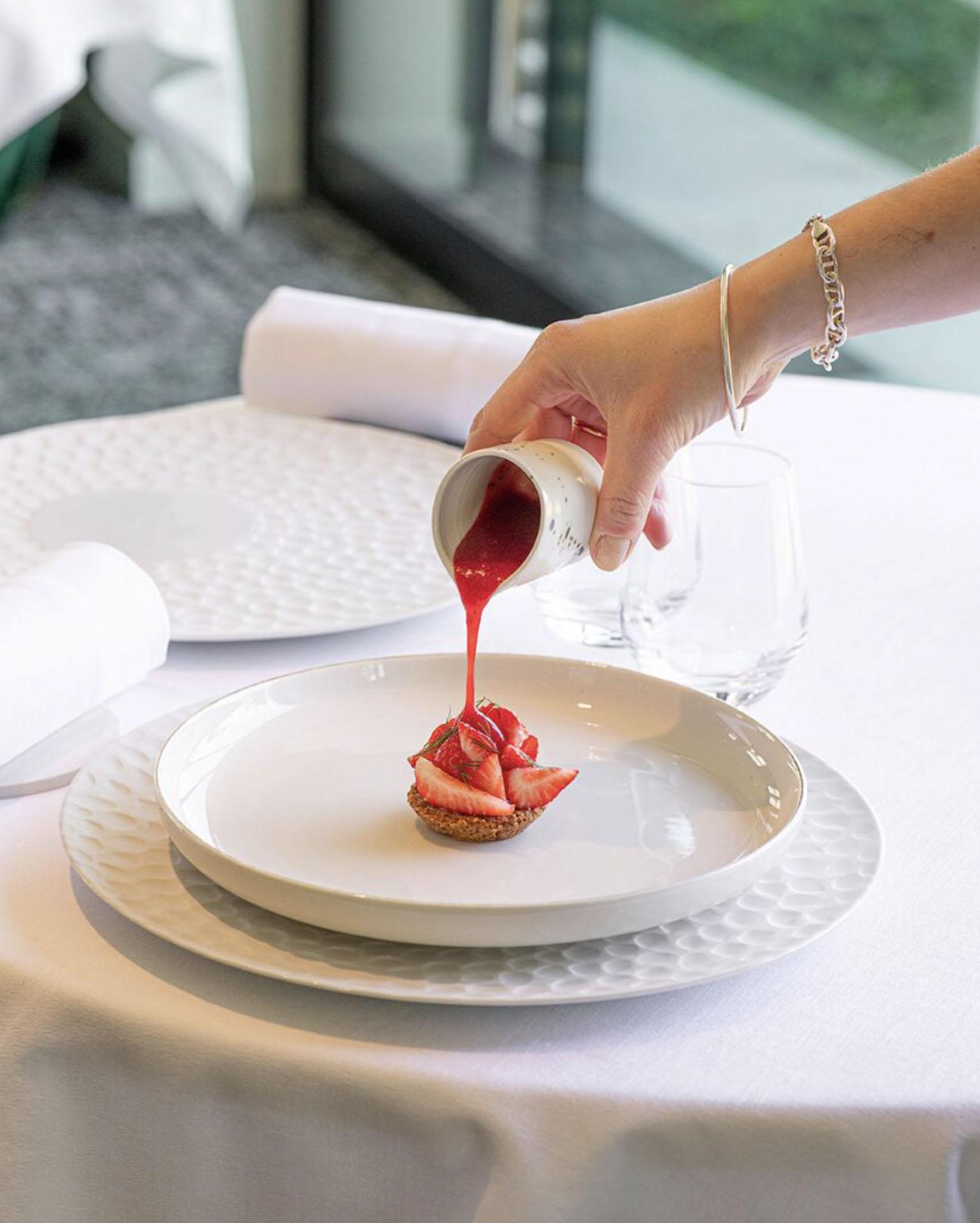 La table : seul restaurant étoilé de la région, La Source est une étape inévitable de tout séjour épicurien en terre stéphanoise. Porté par la toque Antoine Bergeron, enfant du pays né à Cuzieu, à 5 km de là, la Source est l’un des trois restaurants du complexe hôtelier La Charpinière situé à Saint-Galmier, la ville de la source Badoit. C’est aussi le plus virtuose. La salle du restaurant baignée de lumière offre un cadre chic et contemporain, avec une vue sur un parc verdoyant.