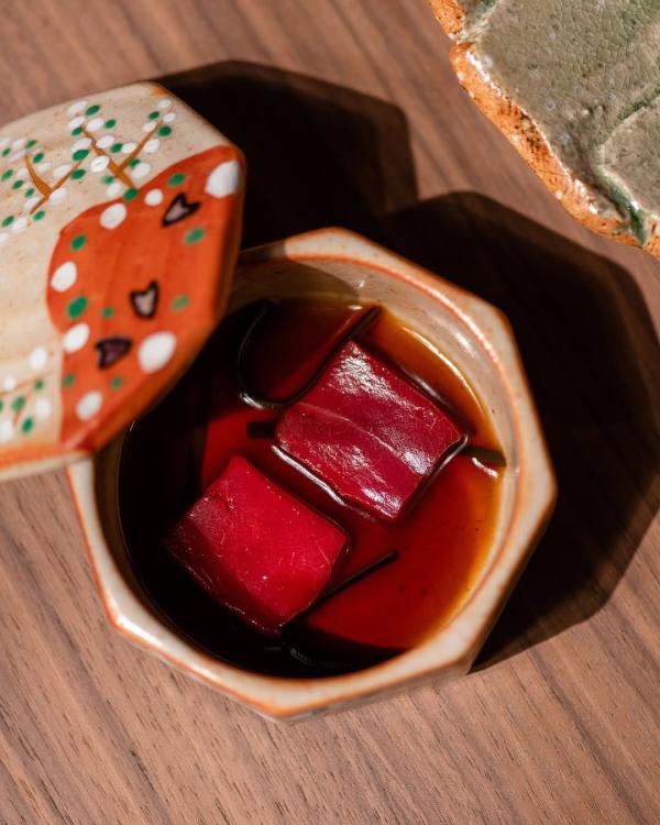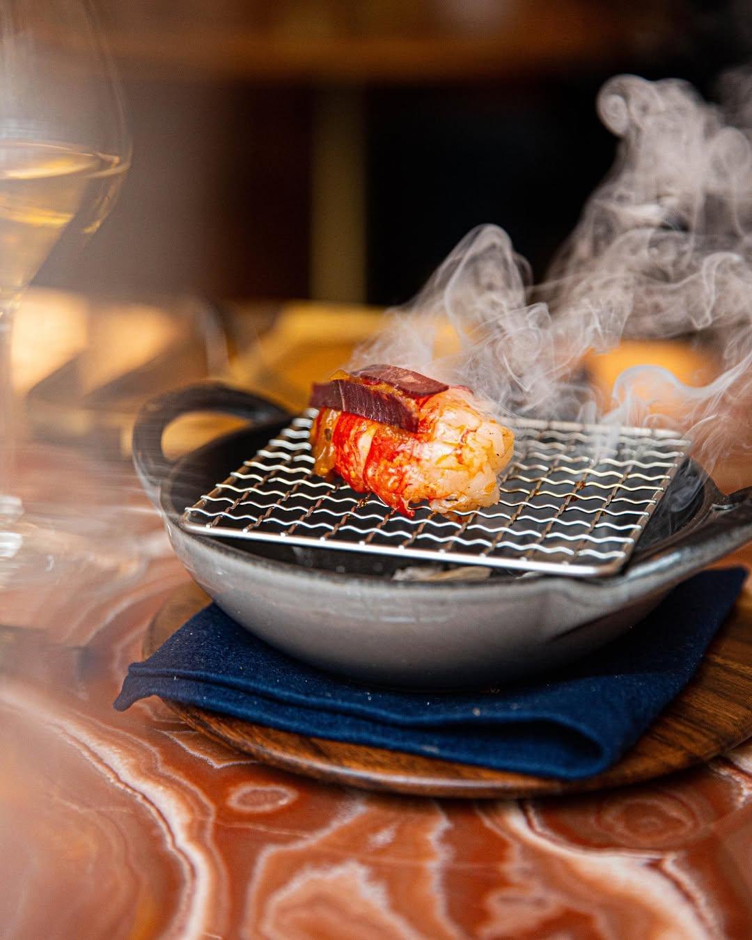 Le repas débute par un bouillon iodé, suivi de sashimis d’une finesse inouïe : maquereau maturé, toro fondant (la partie ventrale des gros thons rouges, qui peut atteindre des prix astronomiques au marché de Toyosu à Tokyo), ormeau flambé au saké... La séquence des nigiris s’avère un sommet de maîtrise, avec des associations subtiles comme le pageot au yuzu et le homard laqué. L’expérience culmine avec un futomaki mêlant caviar et anguille caramélisée. Les classiques sont tenus, dépassés d’un millimètre, mais quelle jouissance pour marquer les esprits, la bouche, et les souvenirs. Nous n’avons jamais connu une telle expérience dans la capitale. En dessert, le pâtissier star Maxime Frédéric prend le relais et signe des créations délicates (mochi glacé à la rhubarbe) tandis qu’Emmanuel Cadieu, directeur de la sommellerie, accompagne ce voyage d’accords entre sakés et vins d’exception.