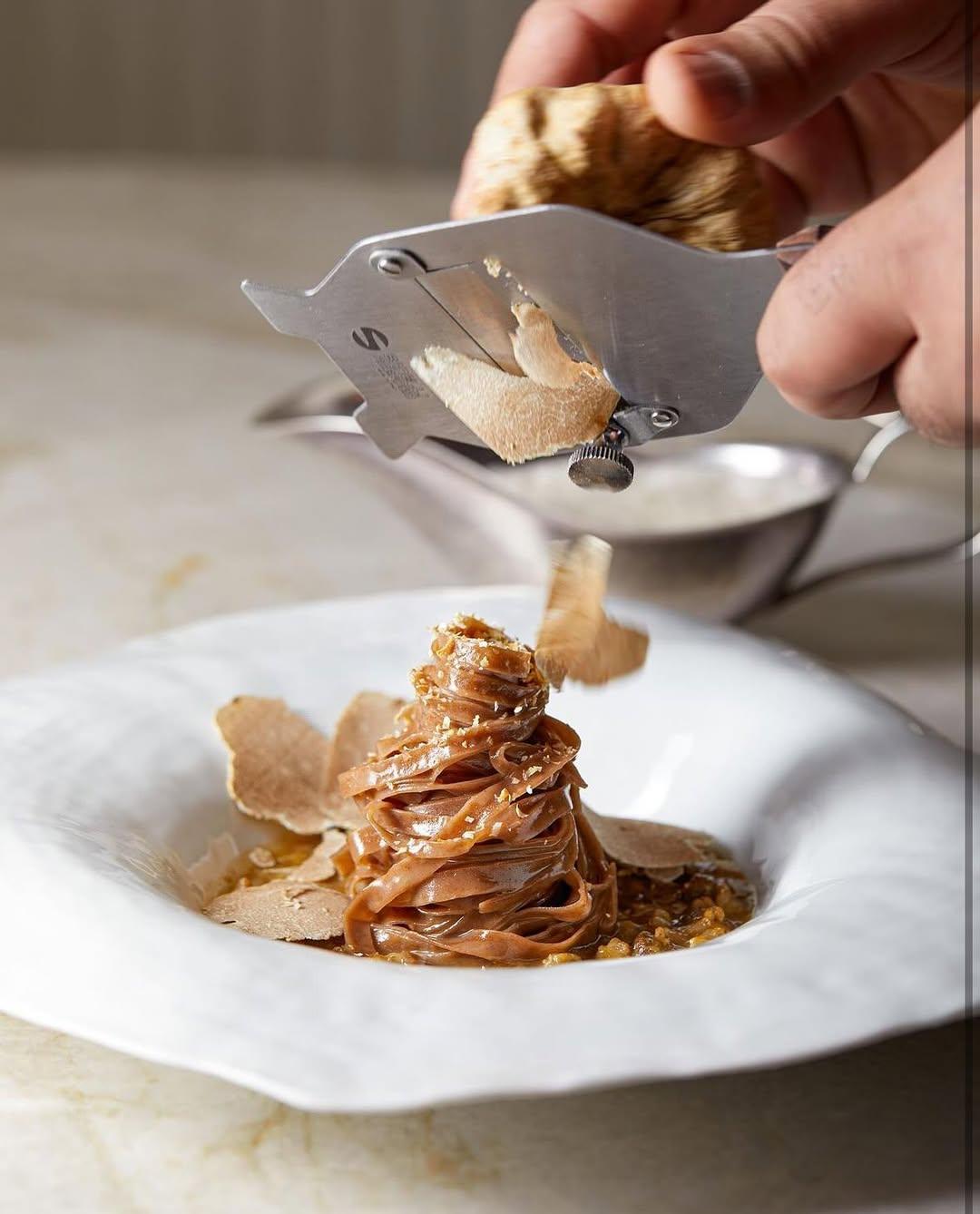 C’est notre dame de cœur en matière de gastronomie parisienne. Anne-Sophie Pic, 3 étoiles Michelin, élue meilleure cheffe du monde en 2011 et digne héritière d’une dynastie de cuisiniers de talent, s’est installée au numéro 20 de la rue du Louvre, dans le très touristique 1er arrondissement de la capitale. La délicatesse, la sensibilité qui caractérisent la cheffe, imprègnent totalement ce lieu à l’ambiance feutrée, imaginé comme une parenthèse bucolique pour s’extraire de l’ébullition parisienne.