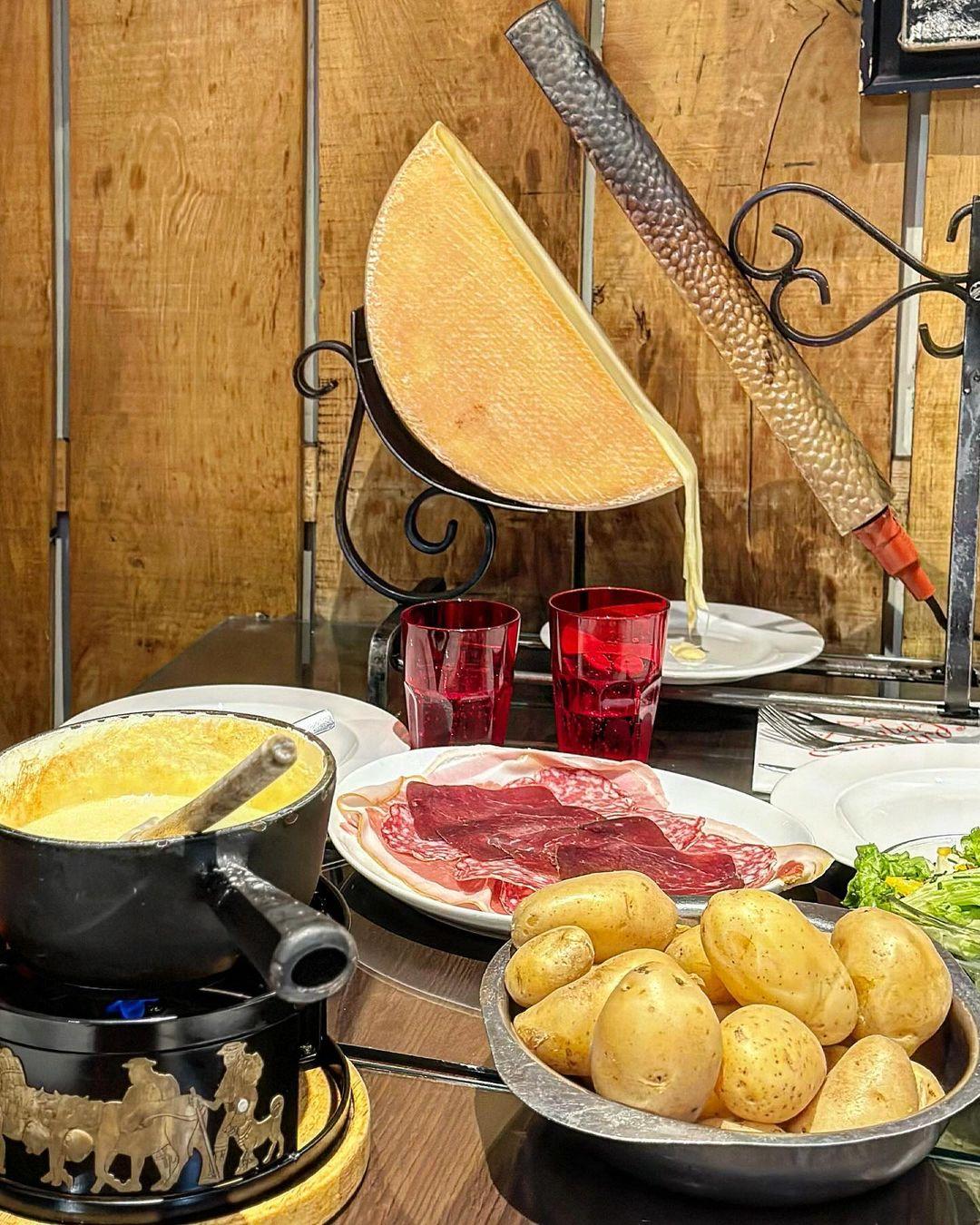 Au cœur du 11e arrondissement de Paris, le Chalet Savoyard s’impose depuis plusieurs années comme la référence des spécialités montagnardes dans la capitale. Dans une salle à manger en lambris, ce restaurant au charme alpin ravit les amateurs de gastronomie savoyarde avec une expérience fromagère hors norme. À la carte, pas moins de neuf recettes différentes de raclette, allant de la traditionnelle au lait cru à la version frottée au vin blanc, en passant par celle à la truffe ou au bleu qui s’accompagnent de pommes de terre à volonté et d’assiettes de charcuterie (jambon de Savoie, viande des Grisons, rosette, cochonnaille…). L'établissement propose aussi d'autres délices, tels que des fondues savoyardes, des pierrades et des tartiflettes. Prix : à partir de 28 € par personne.