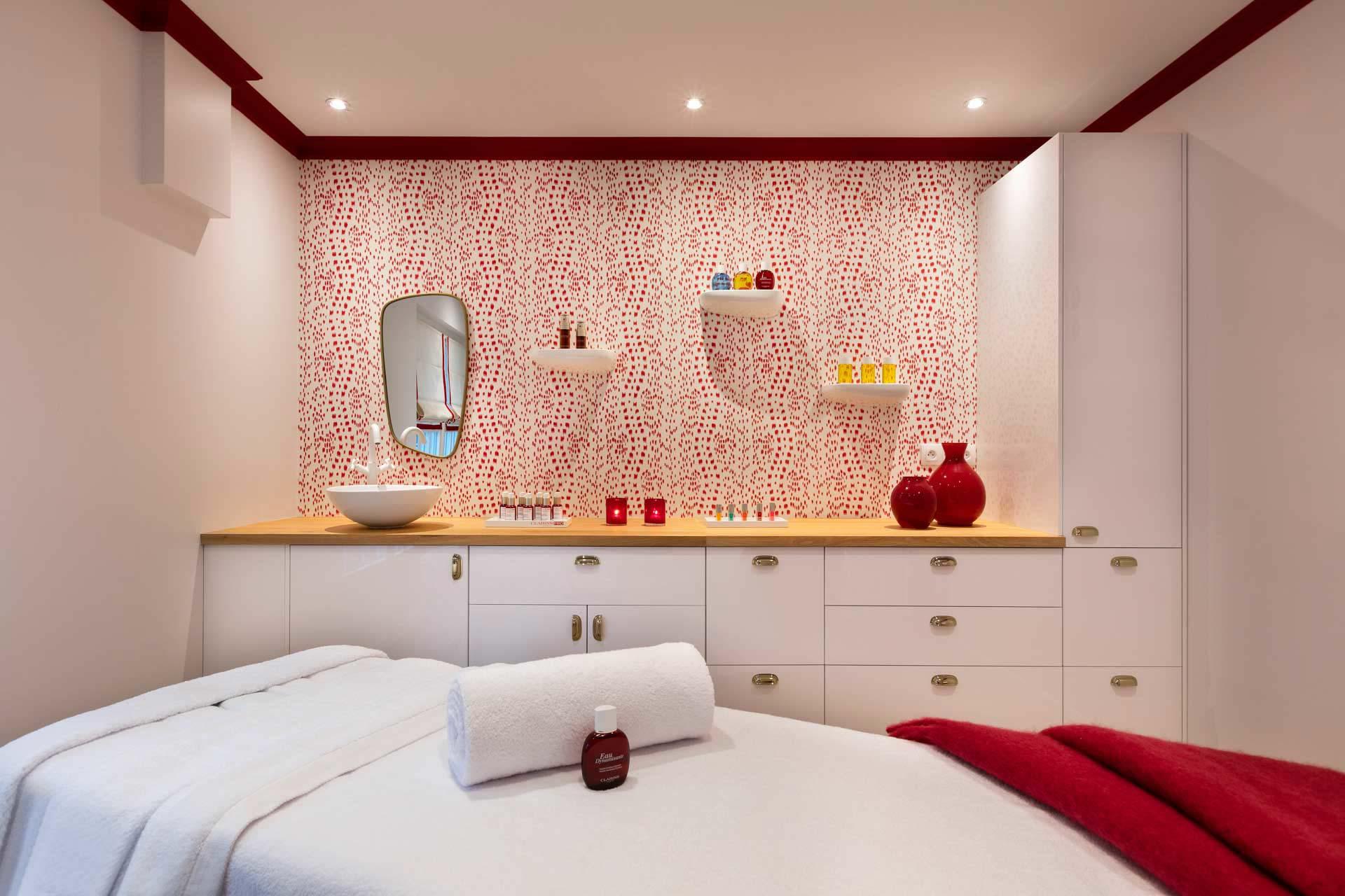 Le spa, réfugié dans le Pavillon Ariane est à la hauteur de l’établissement : des soins signés de la prestigieuse Biologique Recherche, le tryptique sauna, hammam et jaccuzi et la magie d’une piscine sous les voûtes de cette ancienne crypte.