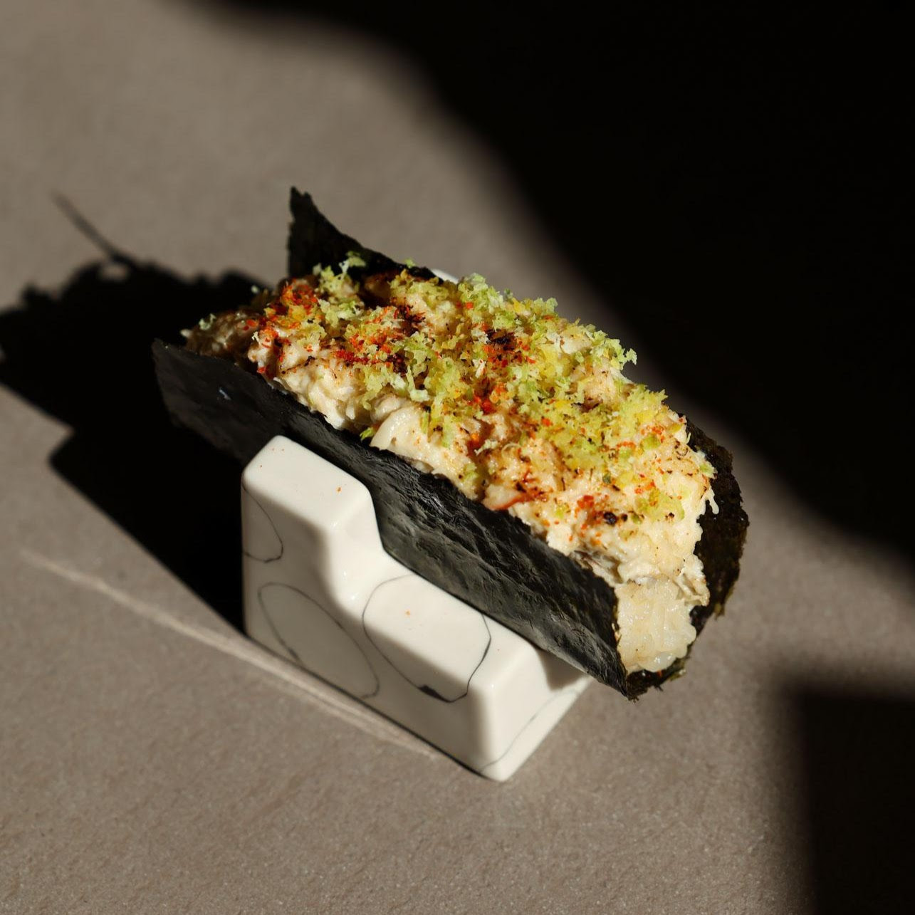 Enfin, direction ce nouveau comptoir à temaki ouvert rue de Turenne à Paris. Nobisan — c'est son nom — réussit à dépoussiérer l’omakase tout en gardant finesse et précision. Une belle surprise.