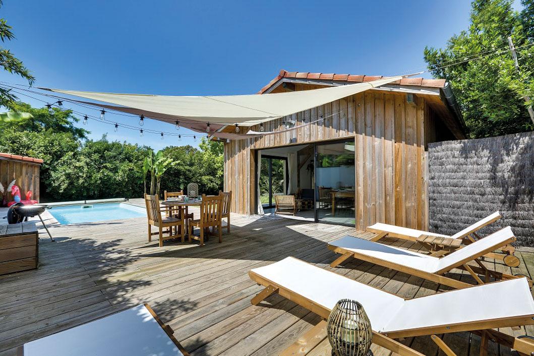 À Saubion, entre océan, lacs et forêts, le Nusa Lodge accueille ses hôtes dans une ambiance détendue avec sa charmante maison en bois de 76 m² équipée d’une vaste terrasse orientée plein sud et d’une piscine chauffée. De plein pied et sans vis à vis, cette maison neuve pouvant acceuillir jusqu'à 4 personnes est située à moins de 10 minutes des plus belles plages landaises et à moins de 5 minutes des petits commerces. Pour les amateurs de glamping, Cocooning Tipi offre des tipis aménagés et équipés au cœur de la forêt à Seignosse, idéal pour se reconnecter avec la nature.