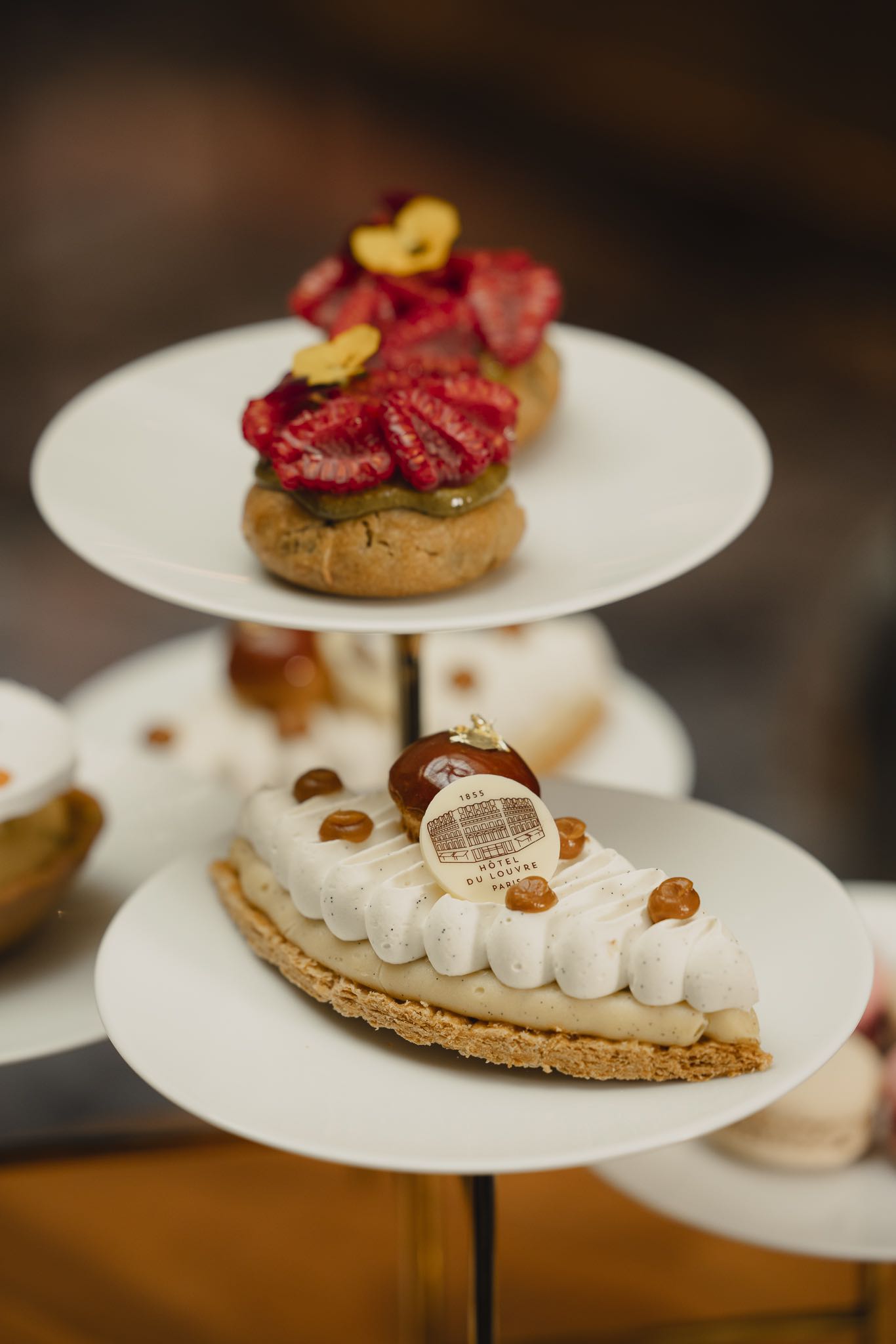 L’après-midi, le lieu se transforme pour un goûter exclusif orchestré par le chef pâtissier Julien Delhome. Pour 50 euros, cette parenthèse chic propose des délices haute-couture : macarons, choux créatifs et un Saint-Honoré iconique, le tout accompagné de boissons chaudes portant l’emblème Emily at Hôtel du Louvre. Ce rendez-vous est proposé du mercredi au dimanche, de 15h30 à 17h30.