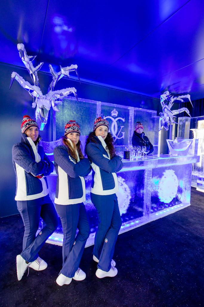 Au milieu des pingouins géants bleu glacier imaginés par ses soins, l’Ice Lounge permet de s’immerger dans un l’univers givré d’un bar de glace à -8°C (pas d’inquiétudes, une sélection de vêtements la maison Fusalp est à disposition pour afffronter le froid polaire) où l’on pourra au choix s’offrir un revigorant shot de vodka (Grey Goose, Belvedere ou Beluga), siroter une coupe de champagne prestige (Deutz Blanc de Blancs ou Cuvée Rose de Laurent-Perrier), se réchauffer d’un chocolat chaud maison à moins que l’on préfère ne se laisser tenter par les bouchées de luxe des chefs maisons : le Foie Gras Passion de Christian Le Squer, la Langoustine Écume de Riz de David Bizet,l a sélection de Crudos de Simone Zanoni et le Mont Blanc Mandarine Truffe Blanche de Maxime Frédéric.