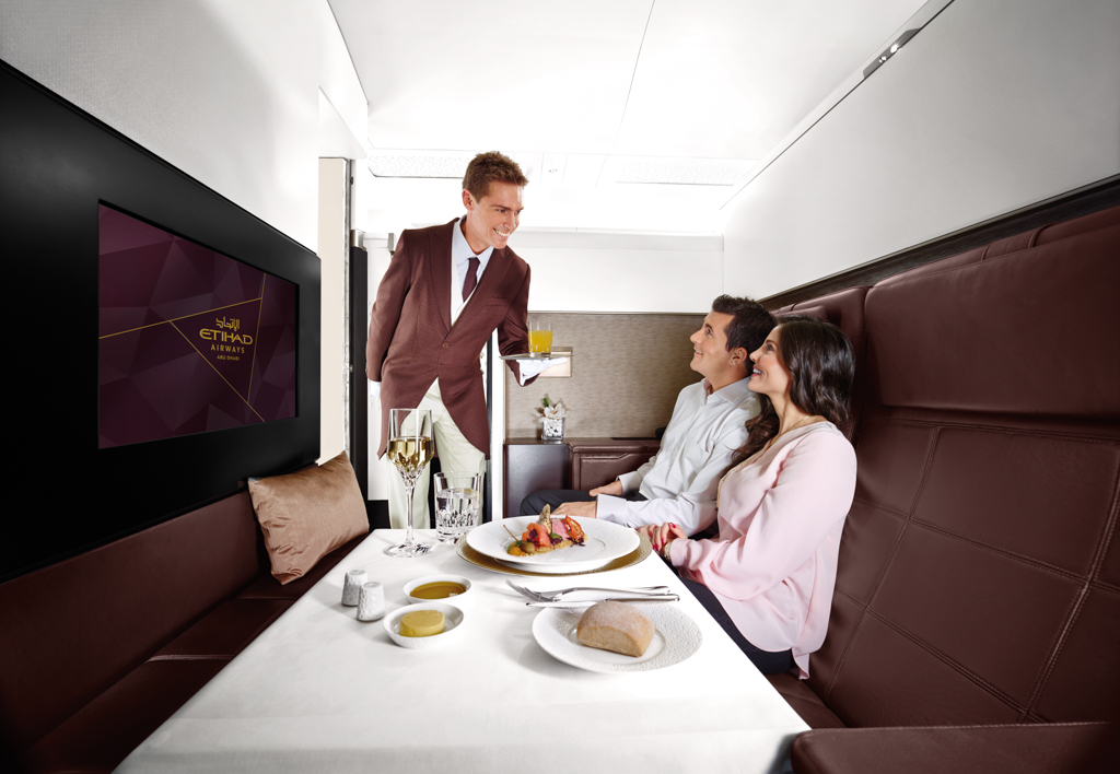 Car au-delà de The Residence by Etihad™, la cabine ultra-luxe d’Etihad (salon de 3 pièces avec chambre double, salon, douche séparée et service de majordorme), l’A380 compte également 9 First Apartments de Première classe, 70 sièges Business Studios (siège-lit full flat de 204cm, accès direct au couloir pour l’ensemble de la cabine) et un Lobby, salon avec confortables canapés et bar privé, situé entre les cabines de Première classe et de classe Affaires.