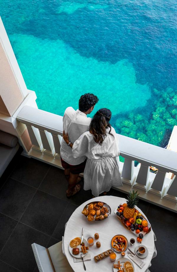 Dans ce palace centenaire, tout respire la grâce Belle Époque : miroirs anciens, fresques délicates, lumière adoucie par des voilages diaphanes. Les chambres et suites, habillées de teintes claires et de tissus chatoyants, s’ouvrent sur des balcons face à la Méditerranée, parfois même avec un jacuzzi privé.